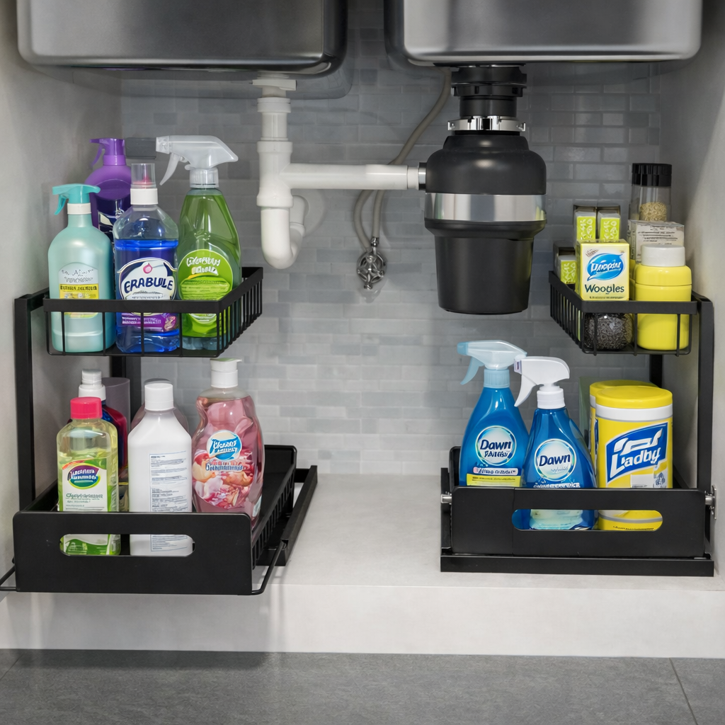 If you’re tired of clutter under your sink, the REALINN Under Sink Organizer is a simple but powerful storage upgrade. Its smart L-shaped design leaves room for plumbing while maximizing vertical cabinet space, making it ideal for small kitchens, bathrooms, and laundry areas. The smooth pull-out sliding drawer allows you to easily access cleaning supplies, toiletries, or tall bottles without digging through the back of the cabinet. The grid-style shelves prevent water buildup and keep everything dry and organized. Whether you use it for cleaning supplies, toiletries, or laundry products, this space-saving organizer makes small cabinets feel instantly more functional.