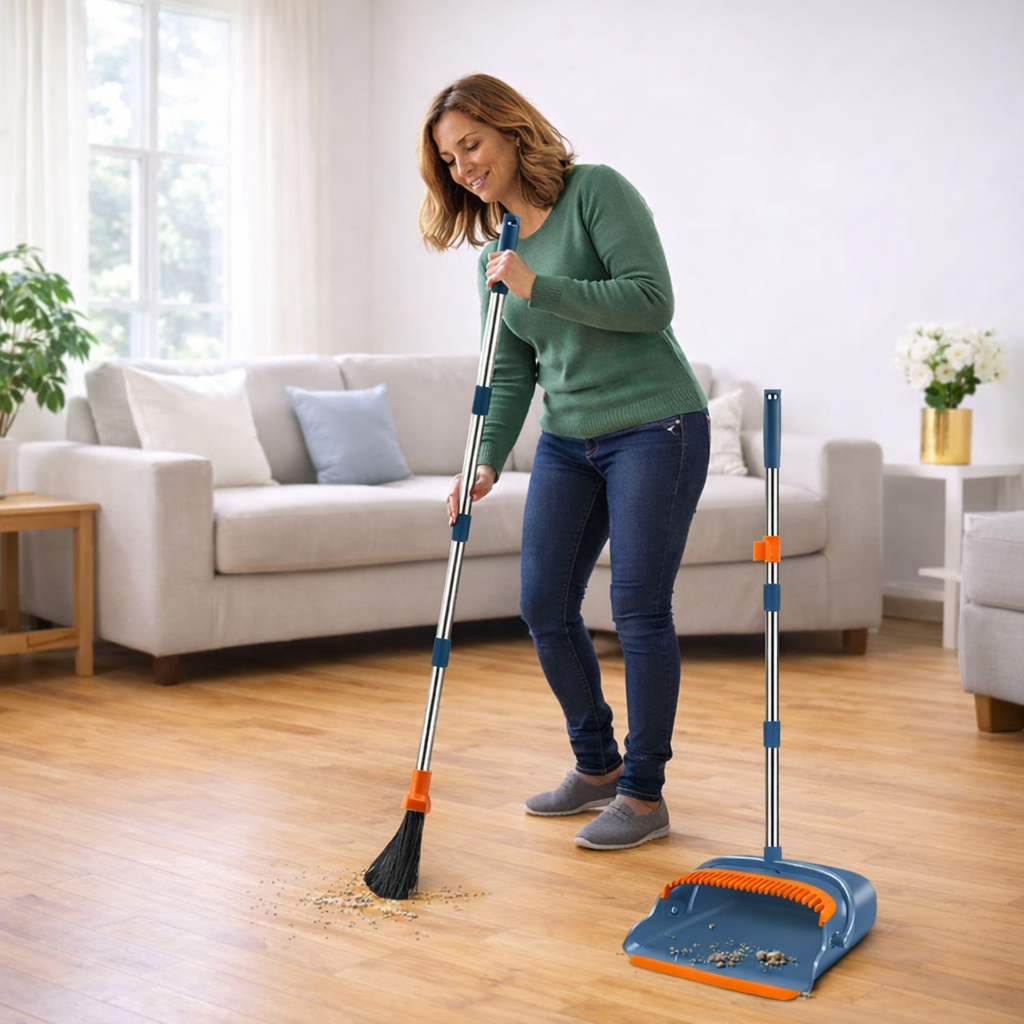 Broom and Dustpan Set – Space-Saving Stand-Up Sweeping Solution